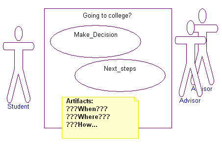 - For instance, a project you might consider doing; could be to go to college to get a 4 year degree, so that you can enjoy earning a bigger paycheck and have steady employment -- maybe, while you are working in your chosen career field. So the concept for this project would be described as "acquire BS/BA college degree and skills to be viable in the 21st century" and modeled at a high-level, as in Figure 10-00A: